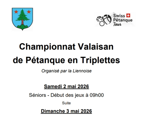 Championnat valaisan seniors de tirConcours A / Tir / Tête-à-tête / Seniors / Non mitigé