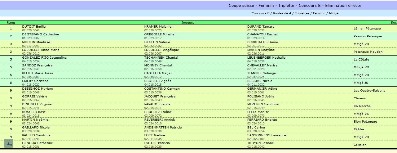 Coupe suisse - Féminins - Triplette - Concours B - Poules de 4