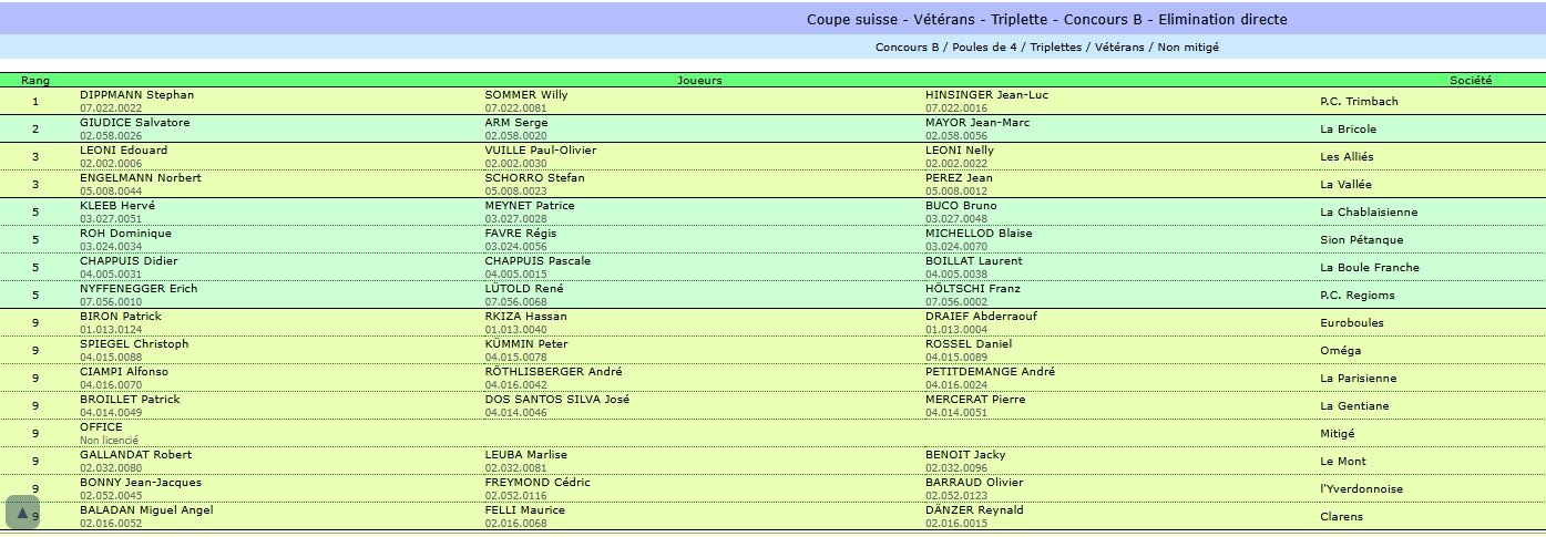 Coupe suisse - Seniors - Triplette - Concours B - Poules de 4